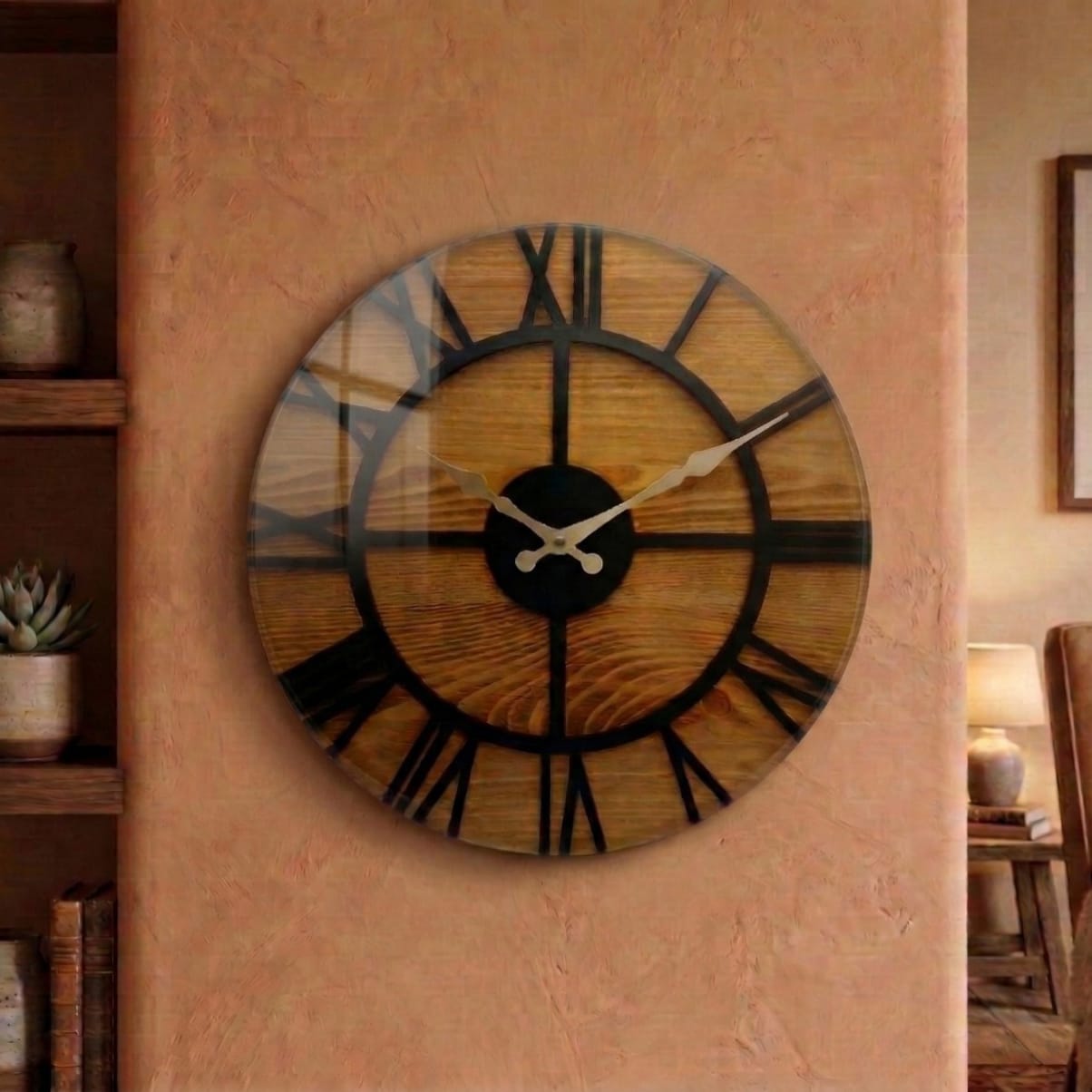 The clock operates with a silent quartz mechanism, allowing smooth movement without ticking noise. Each piece is 100% handmade.