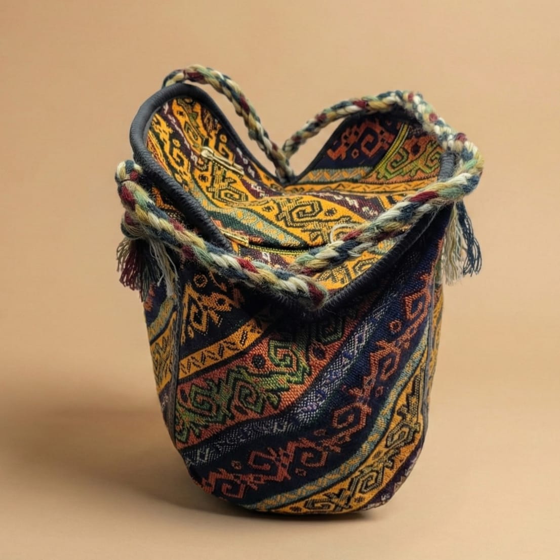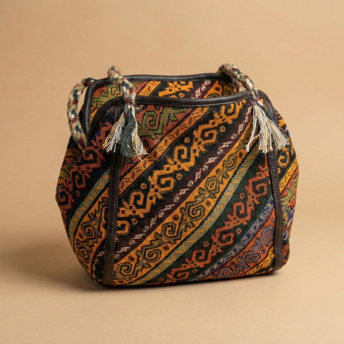 The surface incorporates Anatolian motifs, adding cultural character through pattern rather than ornamentation. The bag is intended for light daily use and complements both casual and interior-focused settings.